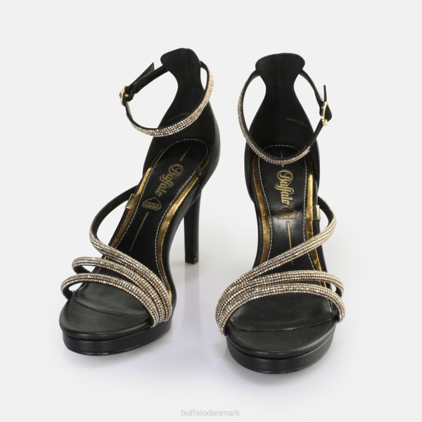 Buffaloserena shine sandal med hæle vegansk 8B4T6H624 sort guld |sandaler