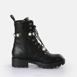 et blikfang i mystisk sort. bikerstøvlens originale stil og remmen trimmet med feminine perler skaber en spændende kontrast, der straks fanger øjet. snørestøvlerne med deres udprægede sål og lave hæl passer til en lille sort kjole samt rock-læderbukser. denwave pearl snørebånd mellem støvlener ikke kun en fryd for øjet, men er også et behageligt højdepunkt for dine fødder. blødtvegansknappa-materiale er foret medmemory foampolstring for perfekt at omfavne dine fødder.