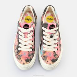 det sorte og lyserøde design på deparrede sneakers low minder om et slipsmønster. udover grundfarverne er nuancer af blå og hvid indarbejdet i designet. hvide snørebånd og en fem centimeter høj hvid chunky sål tilføjer en attraktiv kontrast. disse sko er lavet afveganske materialer, overdelen er udelukkende lavet afnaturlig bomuld, sålen er lavet af højkvalitets polyurethan. udover det seje design tilbyder deletteparrede sneakers low en perfekt pasform medmemory foamog vidunderlig komfort takket være denaftagelige fodsengog fremragendeåndbarhed.
